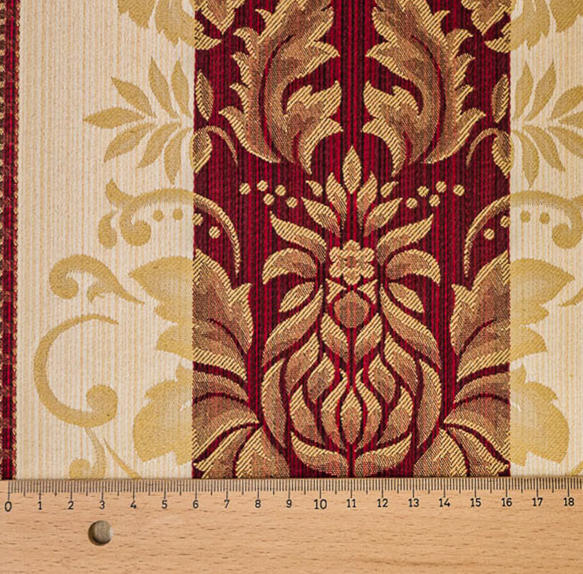 Jacquard, bordeaux, ocker, Arabesken, Streifen, 2,80m Breite