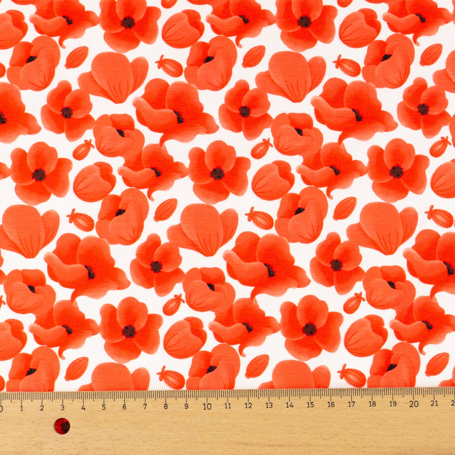 Weicher & elastischer Baumwolljersey bedruckt mit Mohnblüten. Geeignet z.B. für Longsleeves, T-Shirts, Kleider & Leggins.