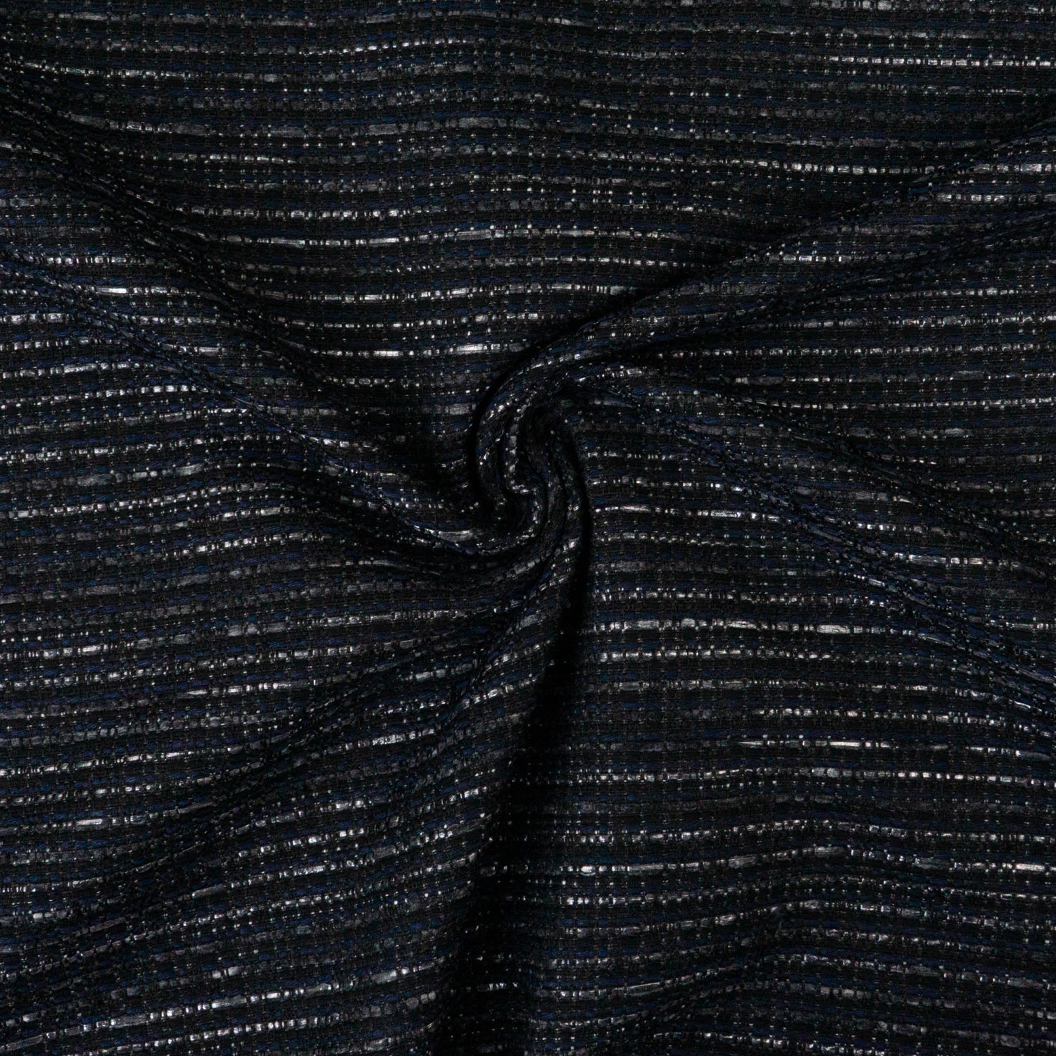 Bouclé, Buntgewebe, schwarz, dunkelblau, silber, Webstruktur