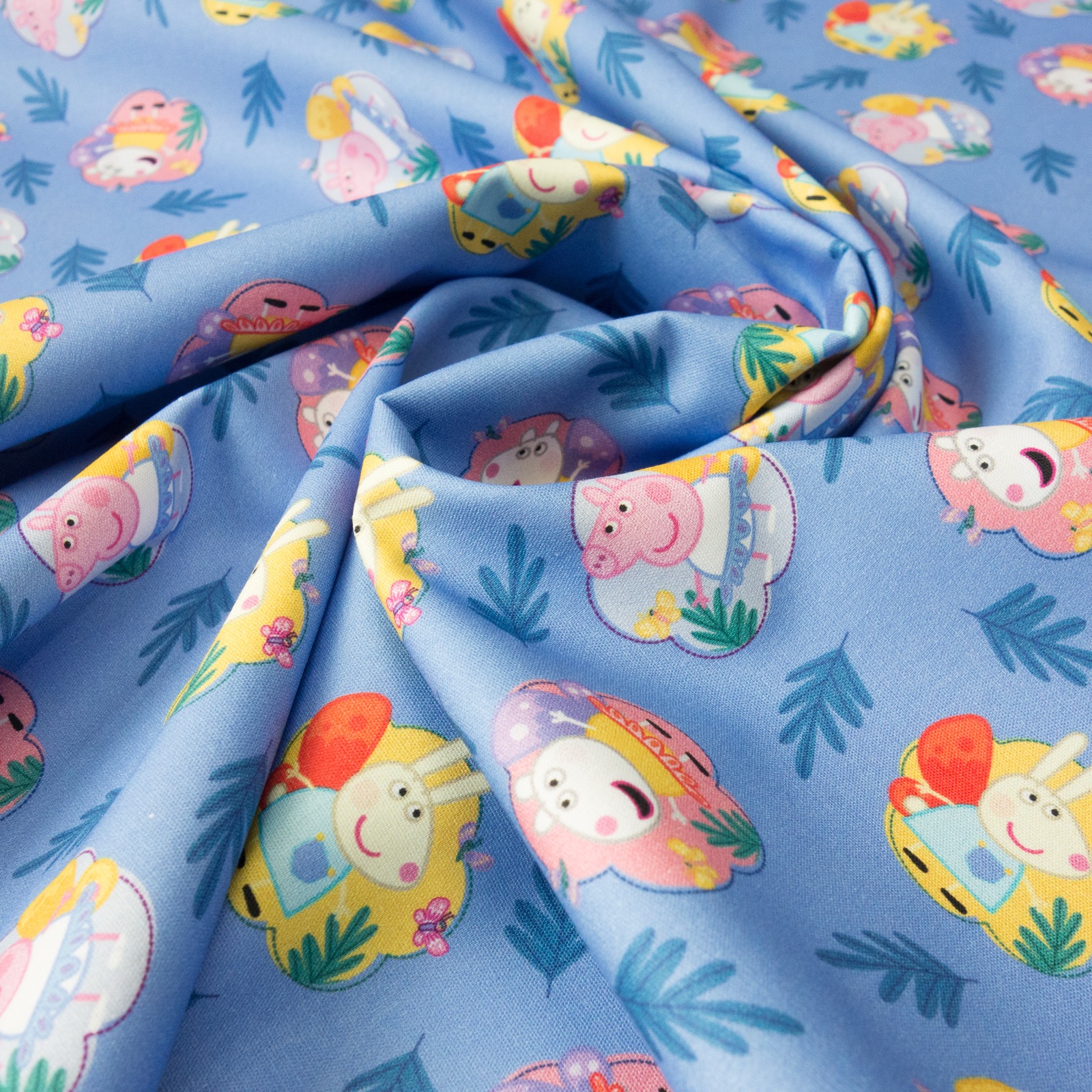 Feines Gewebe aus reiner Baumwolle, bedruckt mit „Peppa Wutz“ Motiven. Geeignet für Kinderbekleidung und Accessoires wie z.B. Taschen oder Halstücher.