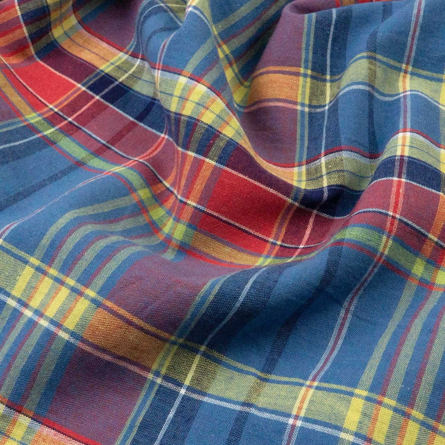 Baumwollstoff, Cretonne, mittelblau, rotorange, gelb, Webkaro