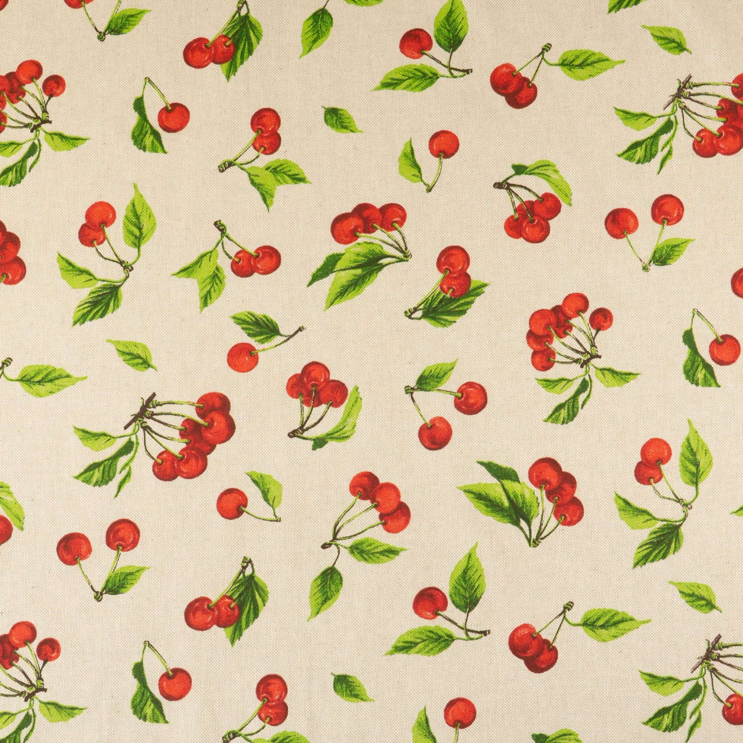 Leichter Dekostoff bedruckt mit Erdbeermotiven. Geeignet z.B. als leichter Möbelbezug, Vorhang, Kissen oder Beutel bzw. Tasche.