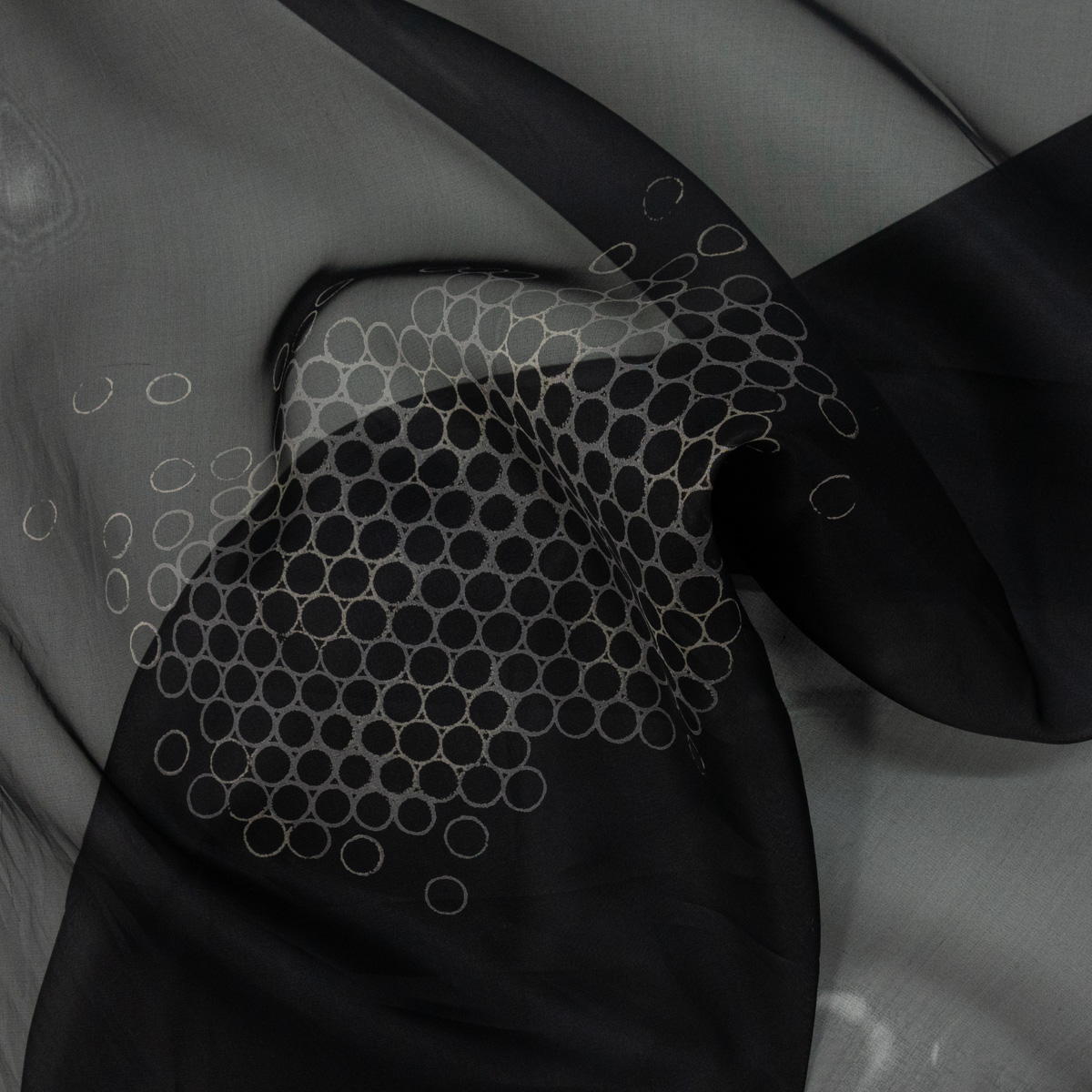 Wunderschöner Seidenchiffon mit einem großzügigem, ca. 35 cm breitem Muster aus lose angeordneten Vielecken.