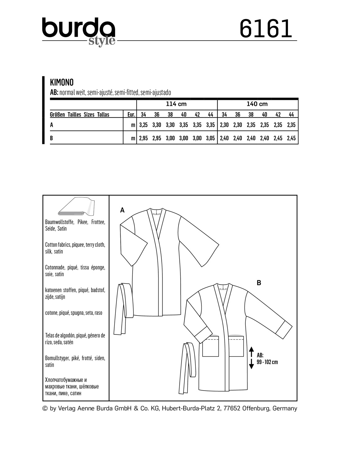 Schnittmuster von Burda easy mit Mehrgrößenschnitt in Originalgröße auf Papierbögen zum Auskopieren oder Ausschneiden – inkl. Nähanleitung.