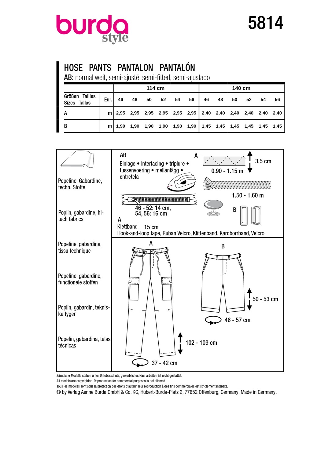 Schnittmuster von Burda style mit Mehrgrößenschnitt in Originalgröße auf Papierbögen zum Auskopieren oder Ausschneiden – inkl. Nähanleitung.
