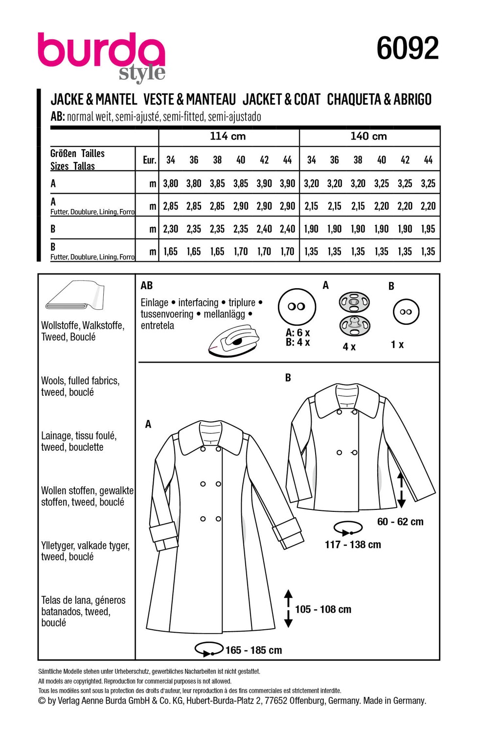 Schnittmuster von Burda style mit Mehrgrößenschnitt in Originalgröße auf Papierbögen zum Auskopieren oder Ausschneiden – inkl. Nähanleitung.