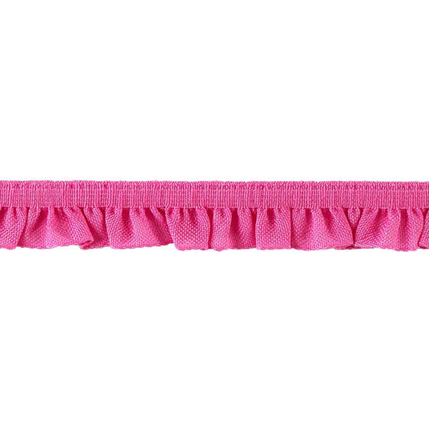 Elastische und weiche Rüschenborte mit mattem Glanz in Pink. Geeignet z.B. für Kantenabschlüsse an Erwachsenen- sowie Kinderbekleidung, Heimtextilien und Kreativprojekte.