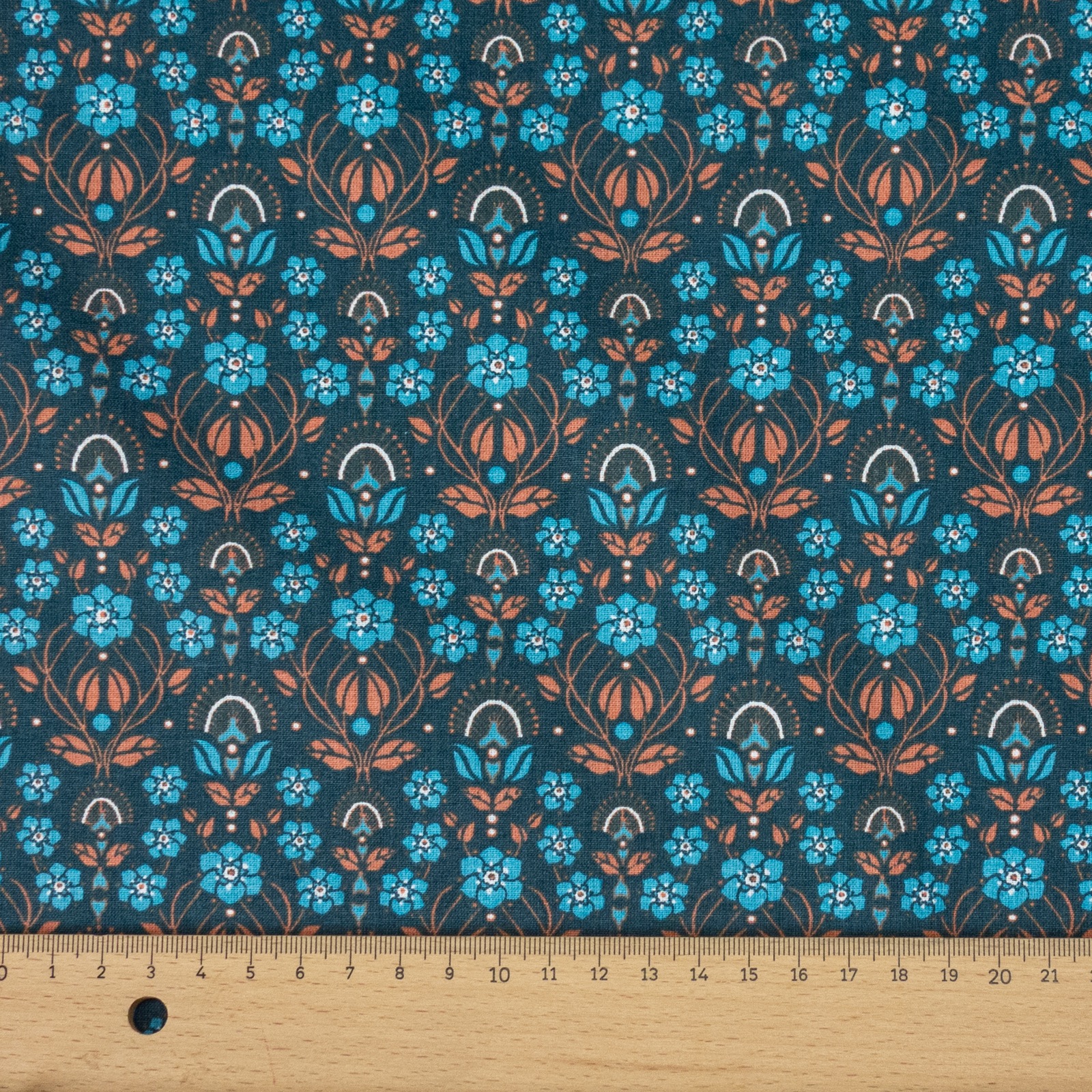 Baumwollstoff, Cretonne, rost, petrol dunkel, hellblau, florale Motive