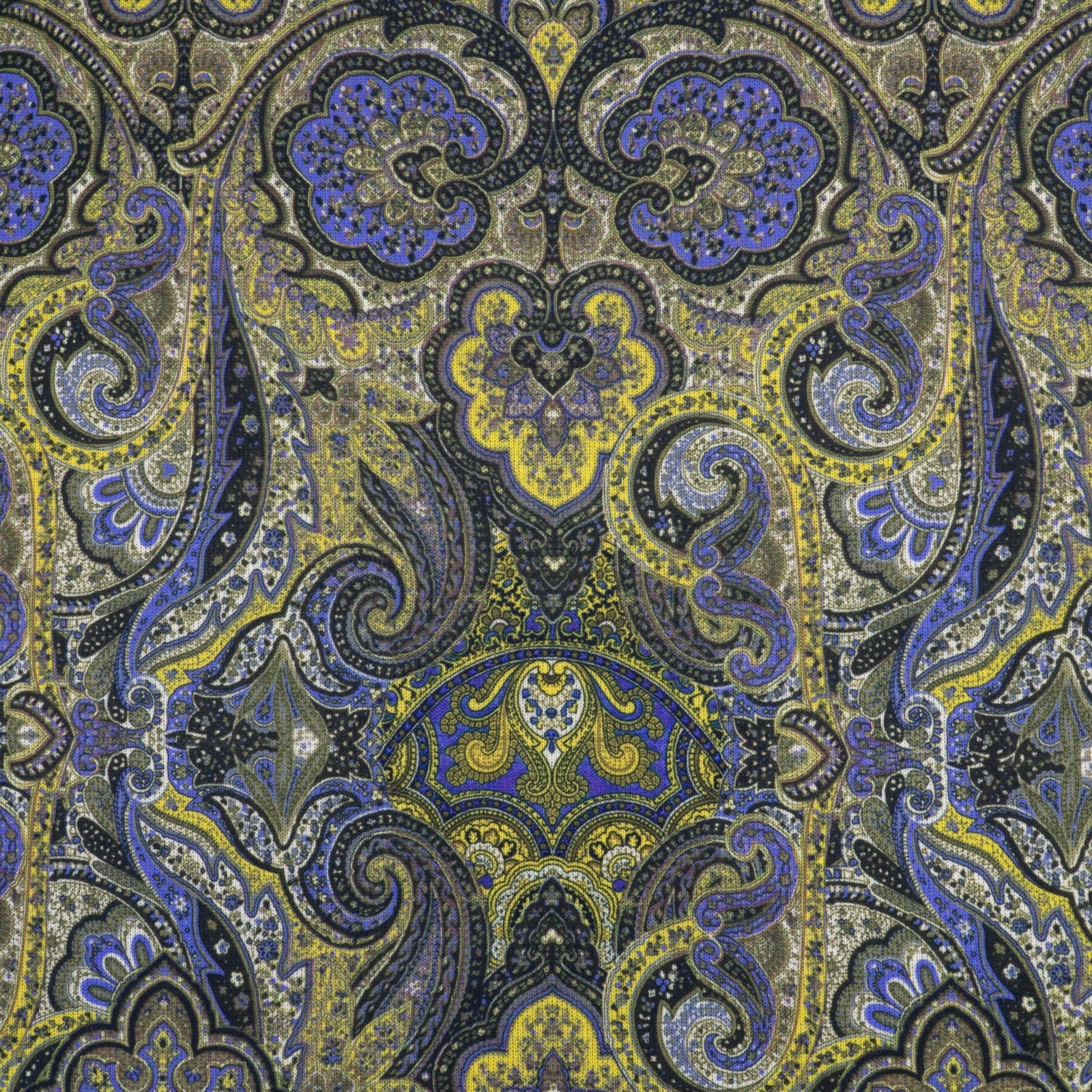 Feinstrick, floral gemustert, gelb, royalblau, grün, grau