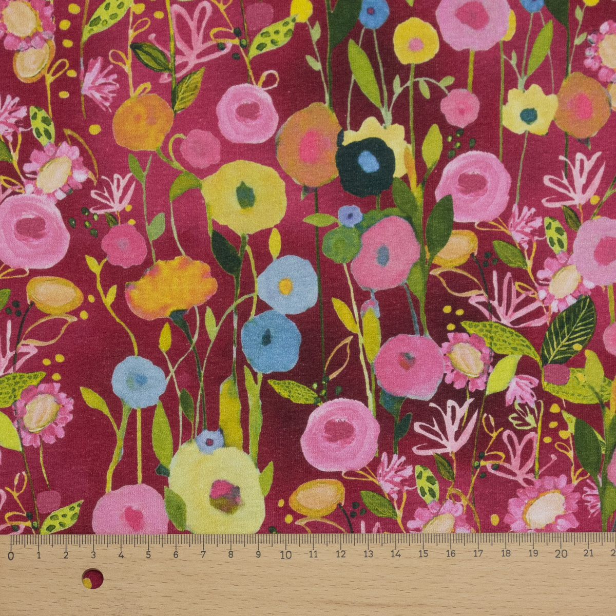 French Terry, grüntöne, gelb, pink, dunkelrot, florale Motive