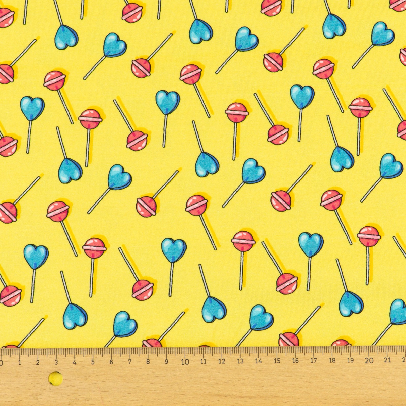 French Terry, gelb, blau, rot, Sweets