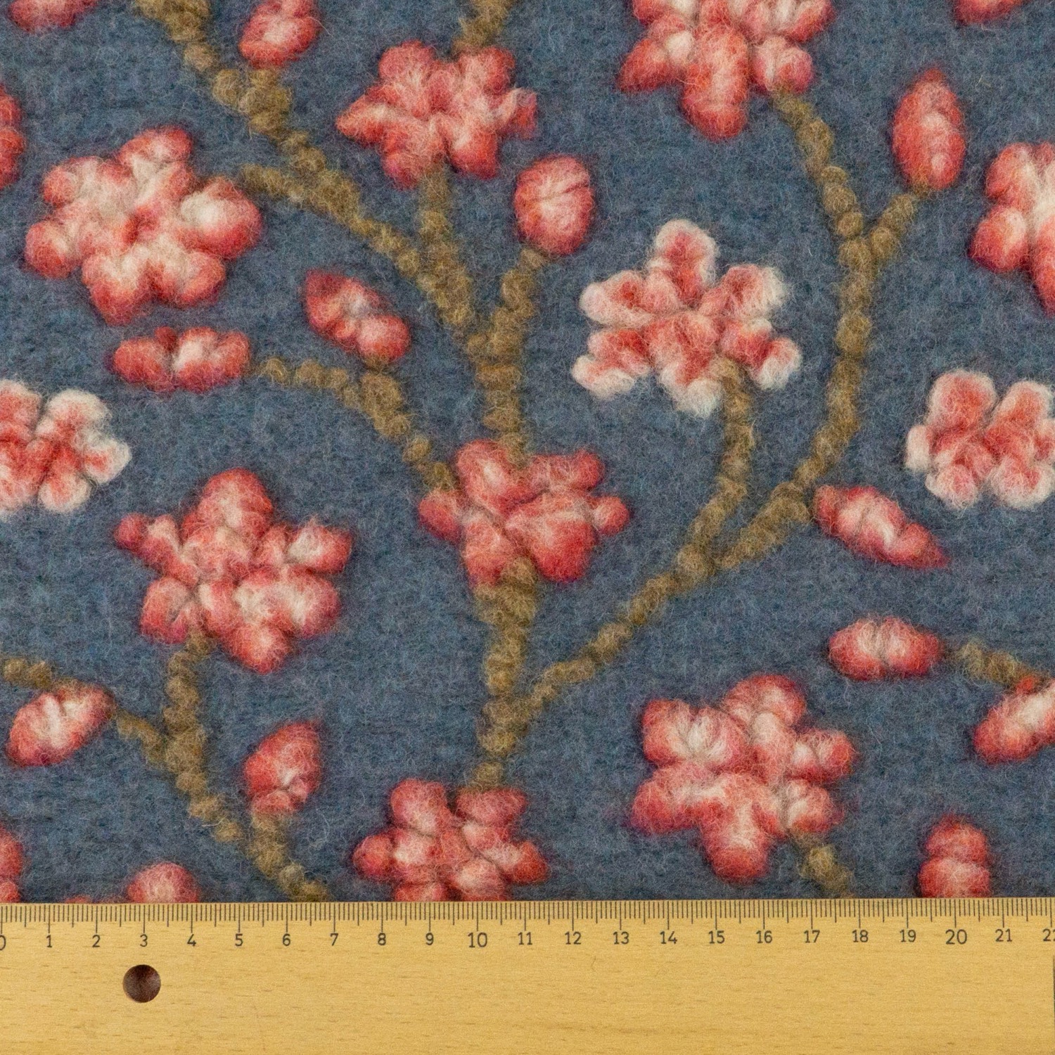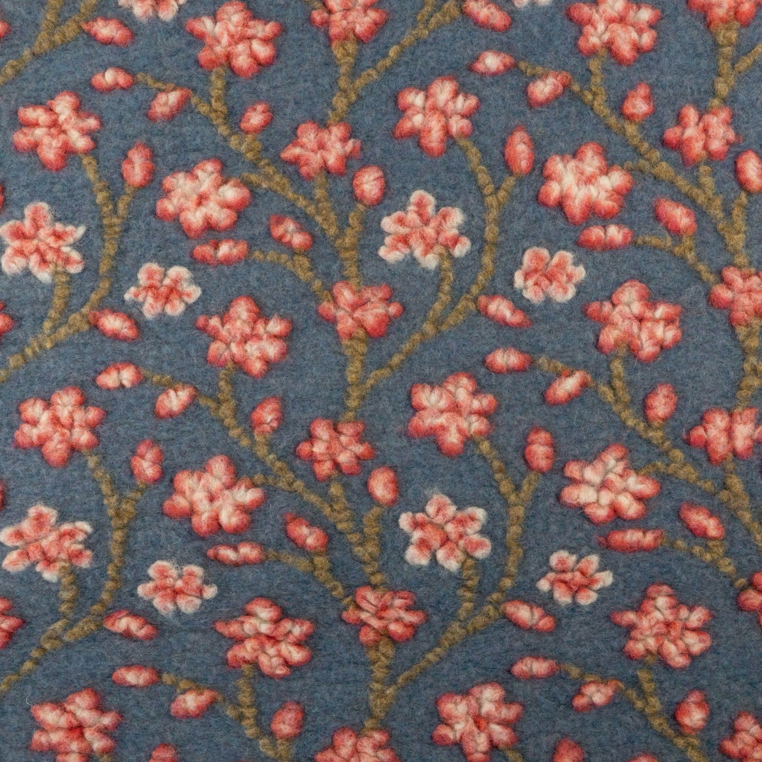 gekochte Wolle, blaugrau, rot, braun, florale Motive