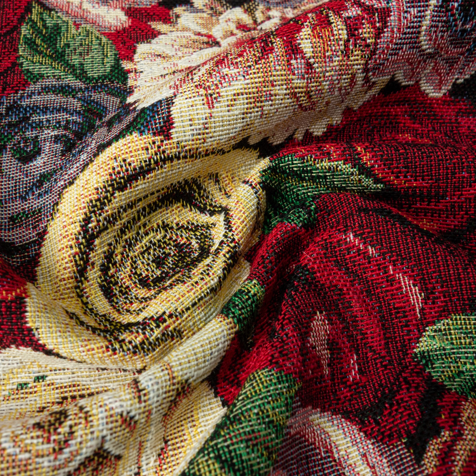 Robuster Gobelin mit eingewebten, üppigen Rosenblüten. Geeignet z.B. für leichte Polsterarbeiten, Wohnaccessoires und Taschen.