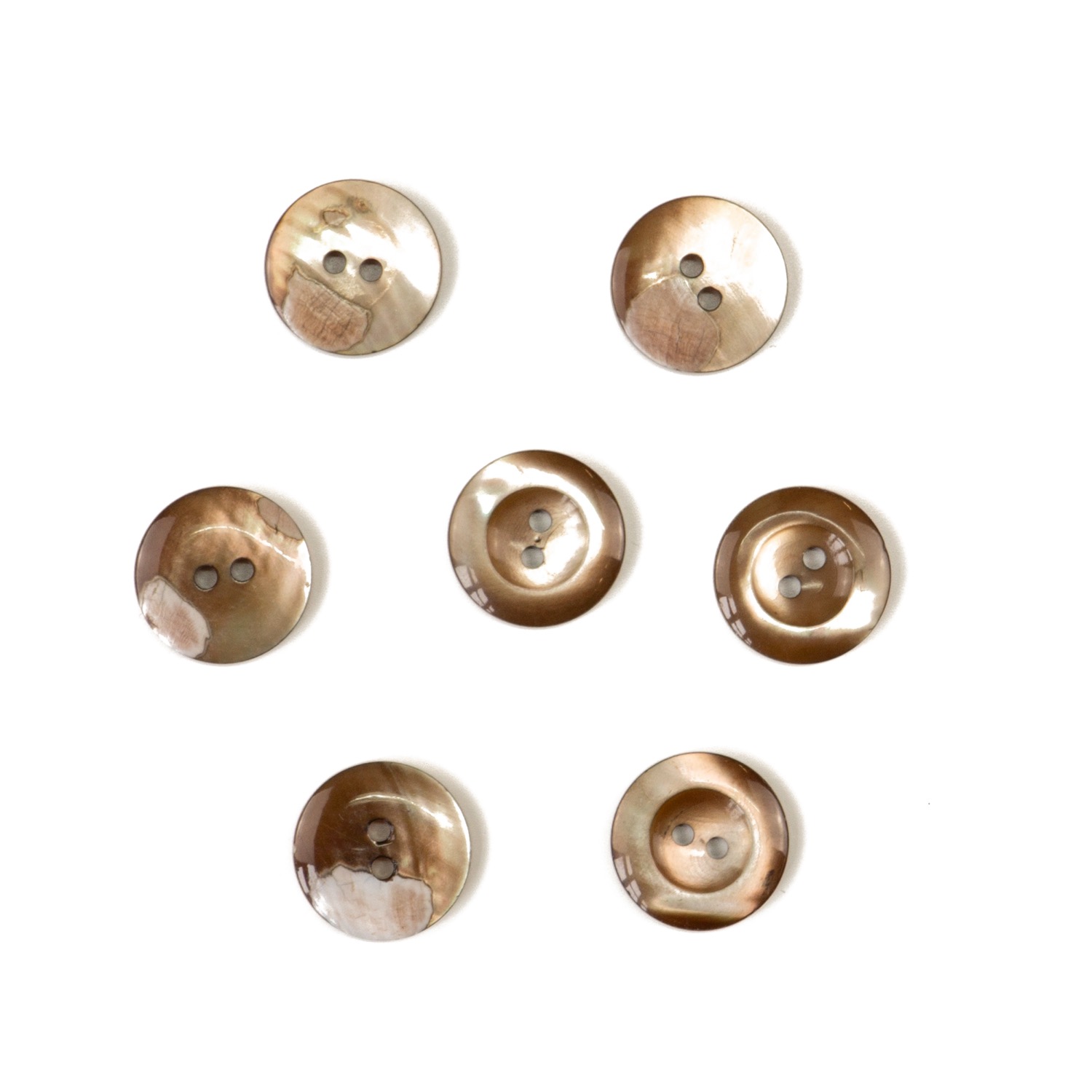 Gefärbter Perlmuttknopf zum Annähen mit 2 Löchern und leichtem Perlmuttglanz. Perlmutt ist ein Naturmaterial, es kann zu leichten Abweichungen in Farbe und Glanz kommen.