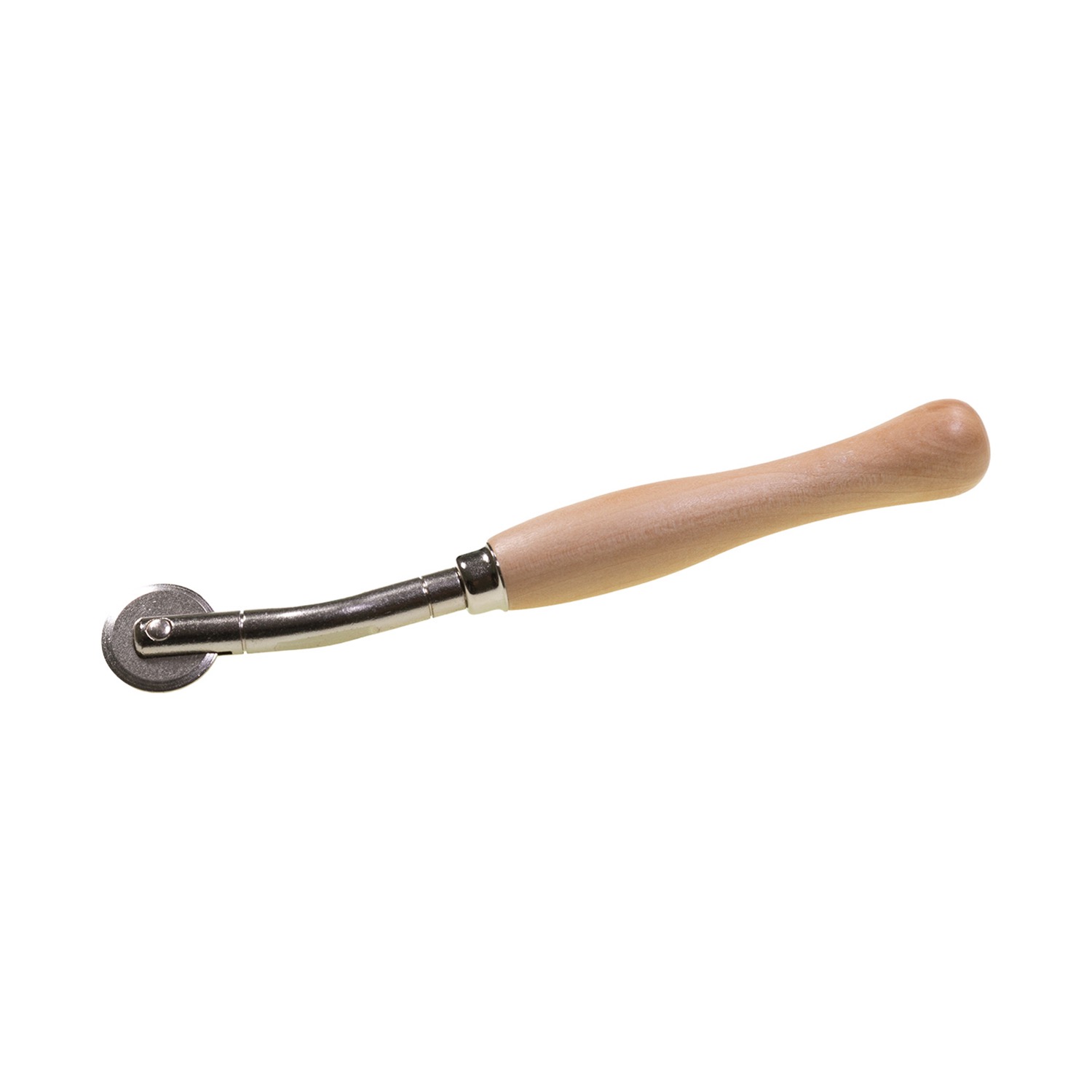 Kopierrädchen mit glatter Kante und Holzgriff zum auskopieren von Schnitten oder Übertragen von Markierungen auf Stoffe.