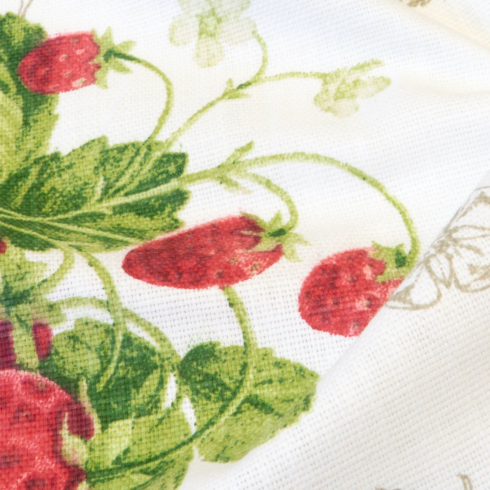 Dekostoff aus Baumwolle bedruckt mit detailreichen Erdbeerpflanzen. Geeignet z.B. für Beutel, Taschen, Tischdecken und andere Heimtextilien.