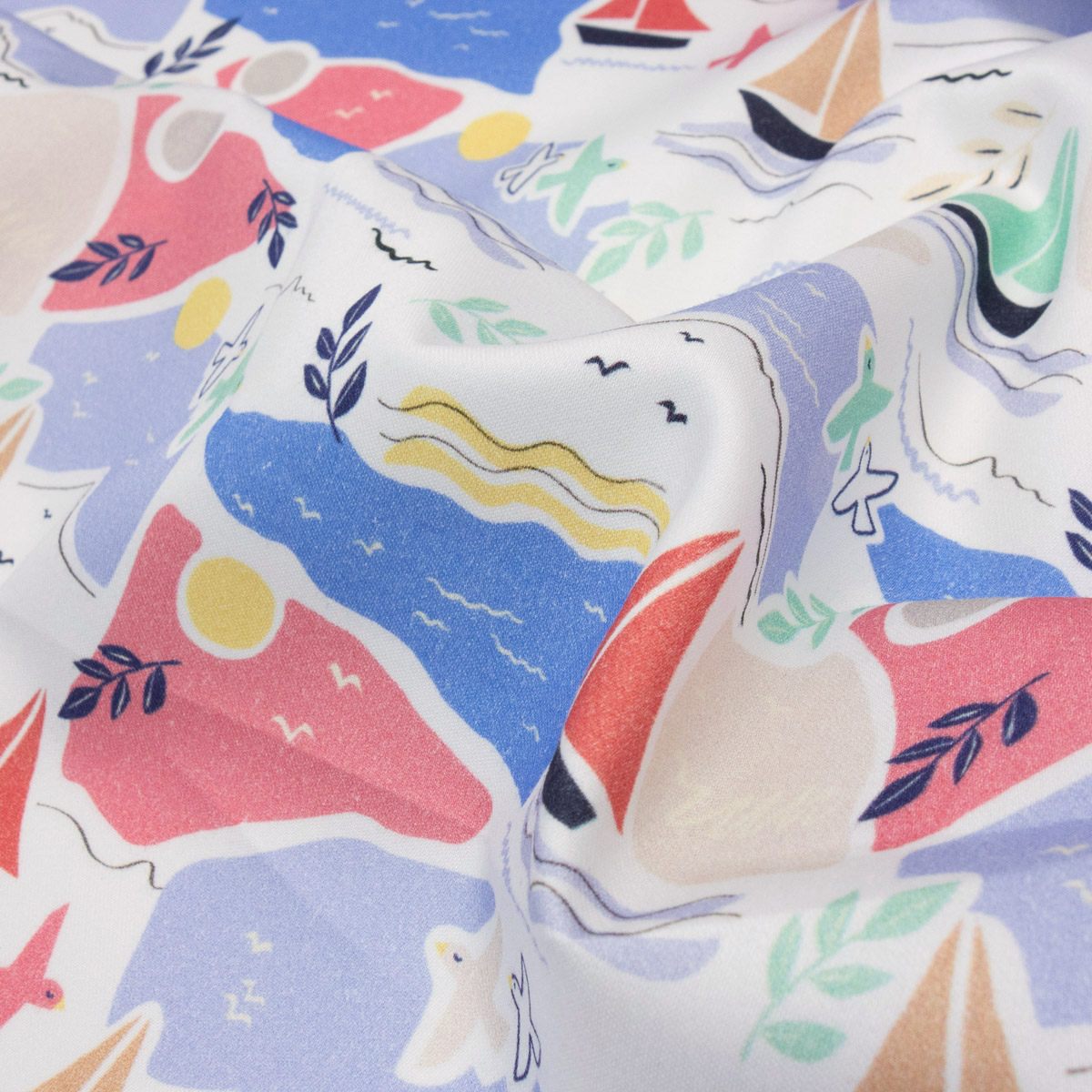 Feiner Baumwollsatin bedruckt mit Segelbooten. Geeignet z.B. für Kleider, Blusen und Hemden.