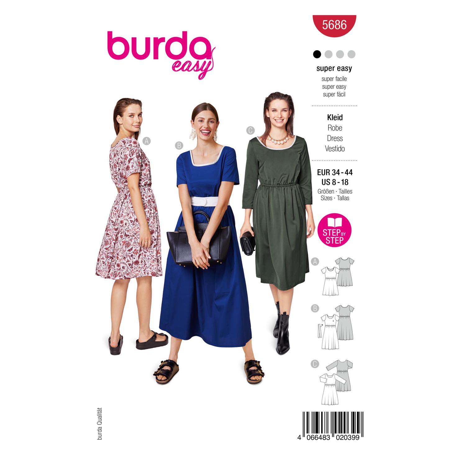 Schnittmuster von Burda style mit Mehrgrößenschnitt in Originalgröße auf Papierbögen zum Auskopieren oder Ausschneiden – inkl. Nähanleitung.