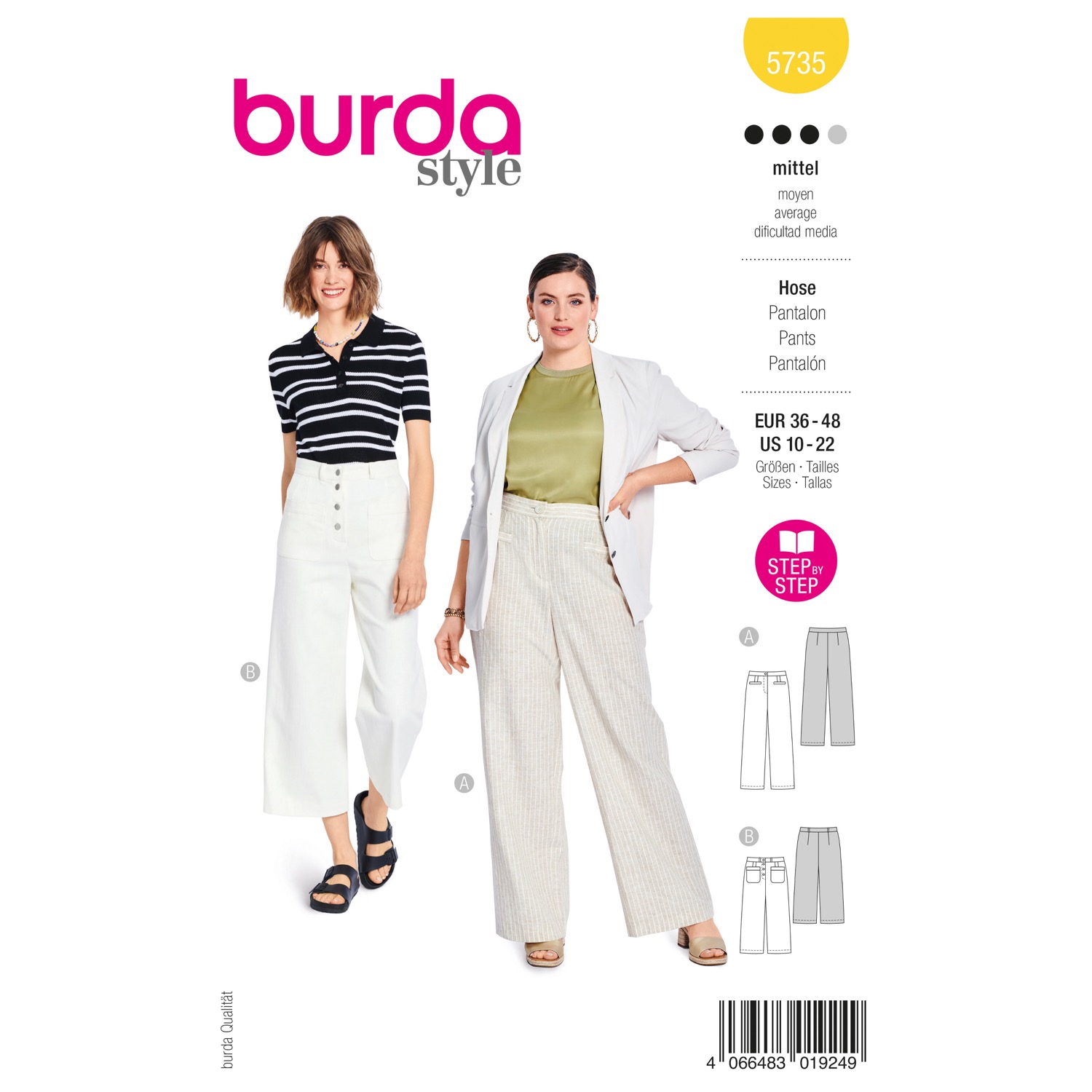 Schnittmuster von Burda style mit Mehrgrößenschnitt in Originalgröße auf Papierbögen zum Auskopieren oder Ausschneiden – inkl. Nähanleitung.