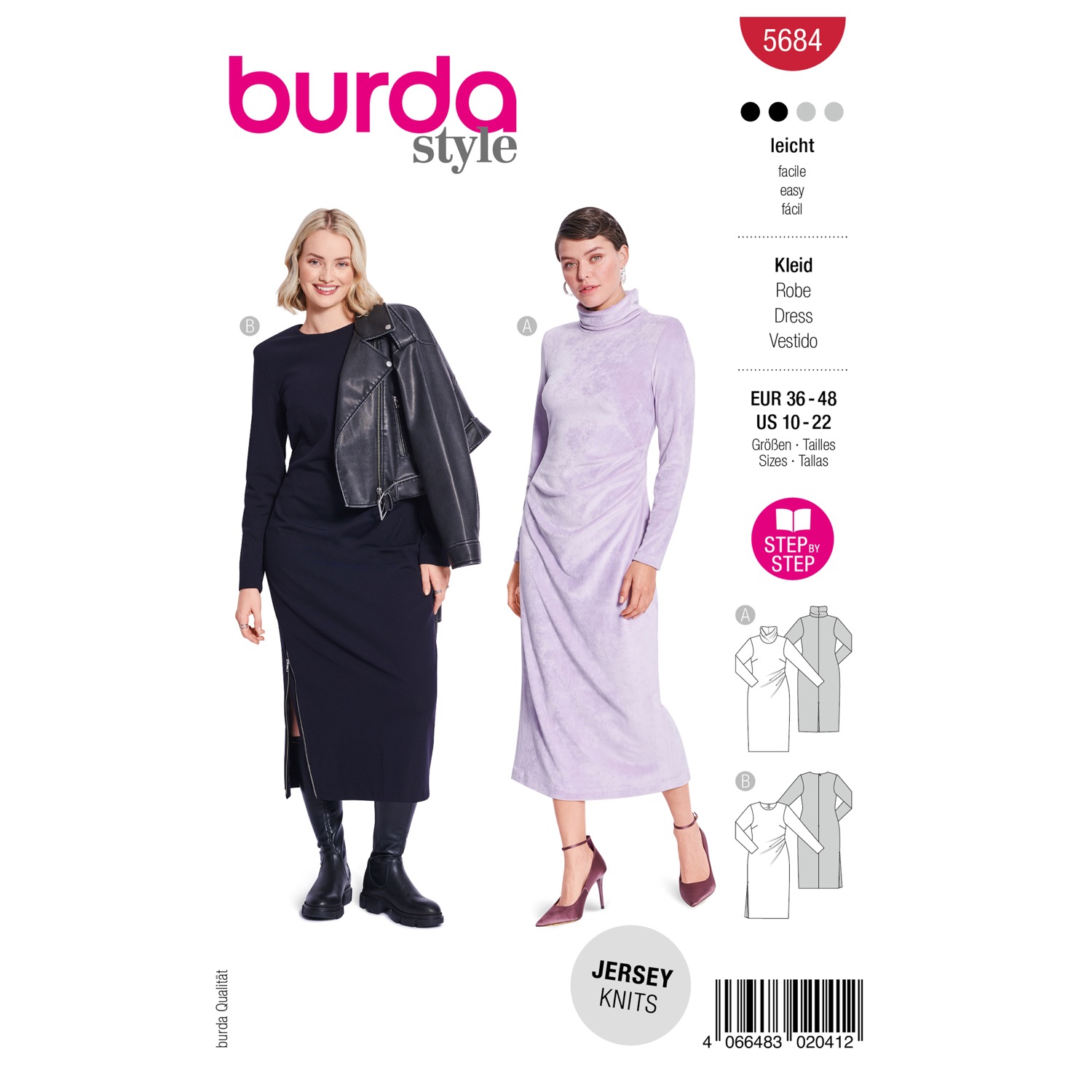 Schnittmuster von Burda style mit Mehrgrößenschnitt in Originalgröße auf Papierbögen zum Auskopieren oder Ausschneiden – inkl. Nähanleitung.