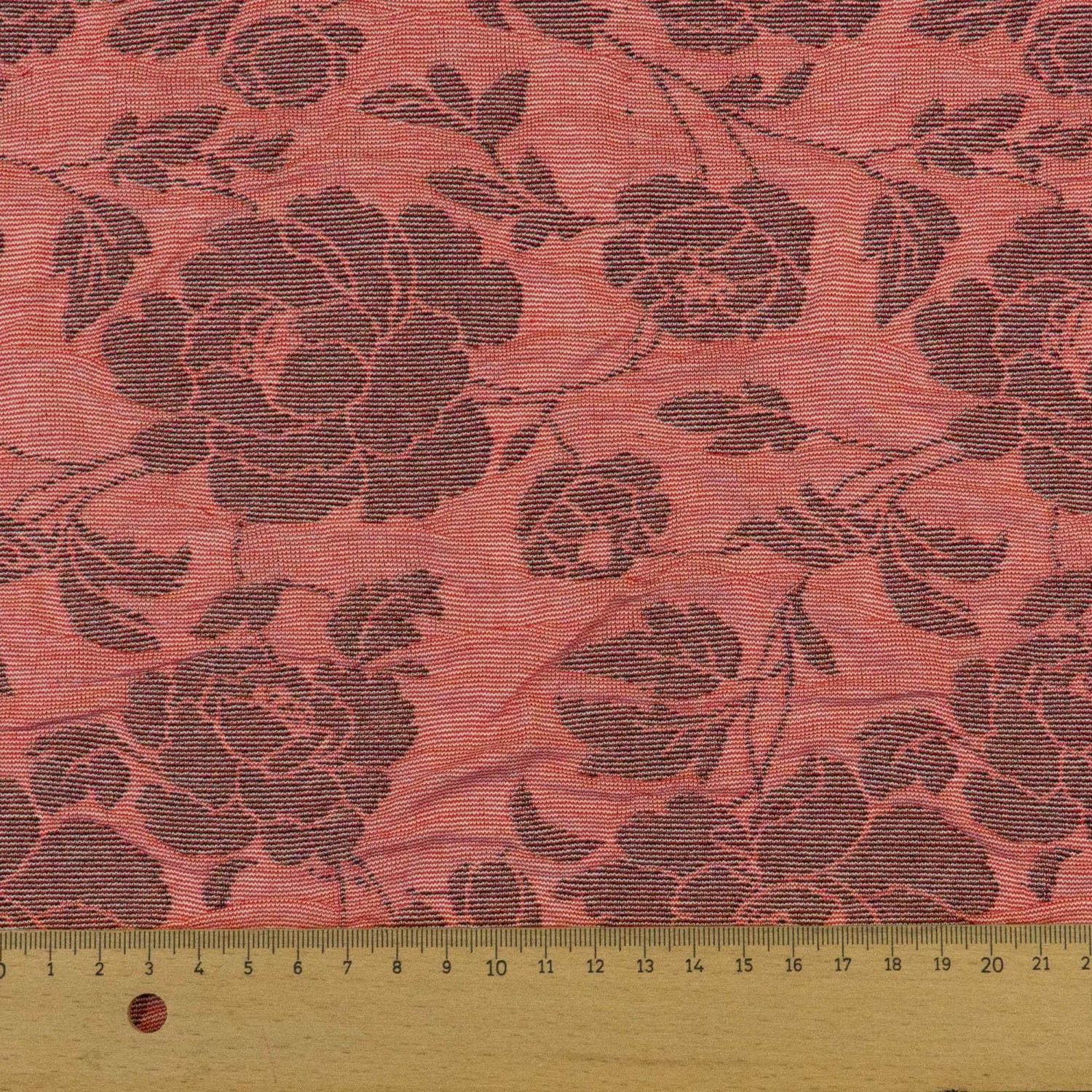 Strickjacquard, Doppelgewebe, rot, schwarz, hellgrau, florale Motive