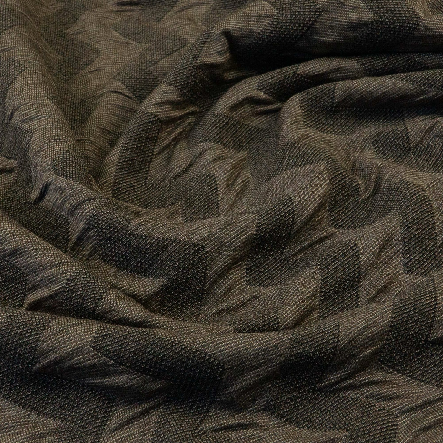 Strickjacquard, Doppelgewebe, schwarz, graubraun, grau, grafisch gemustert