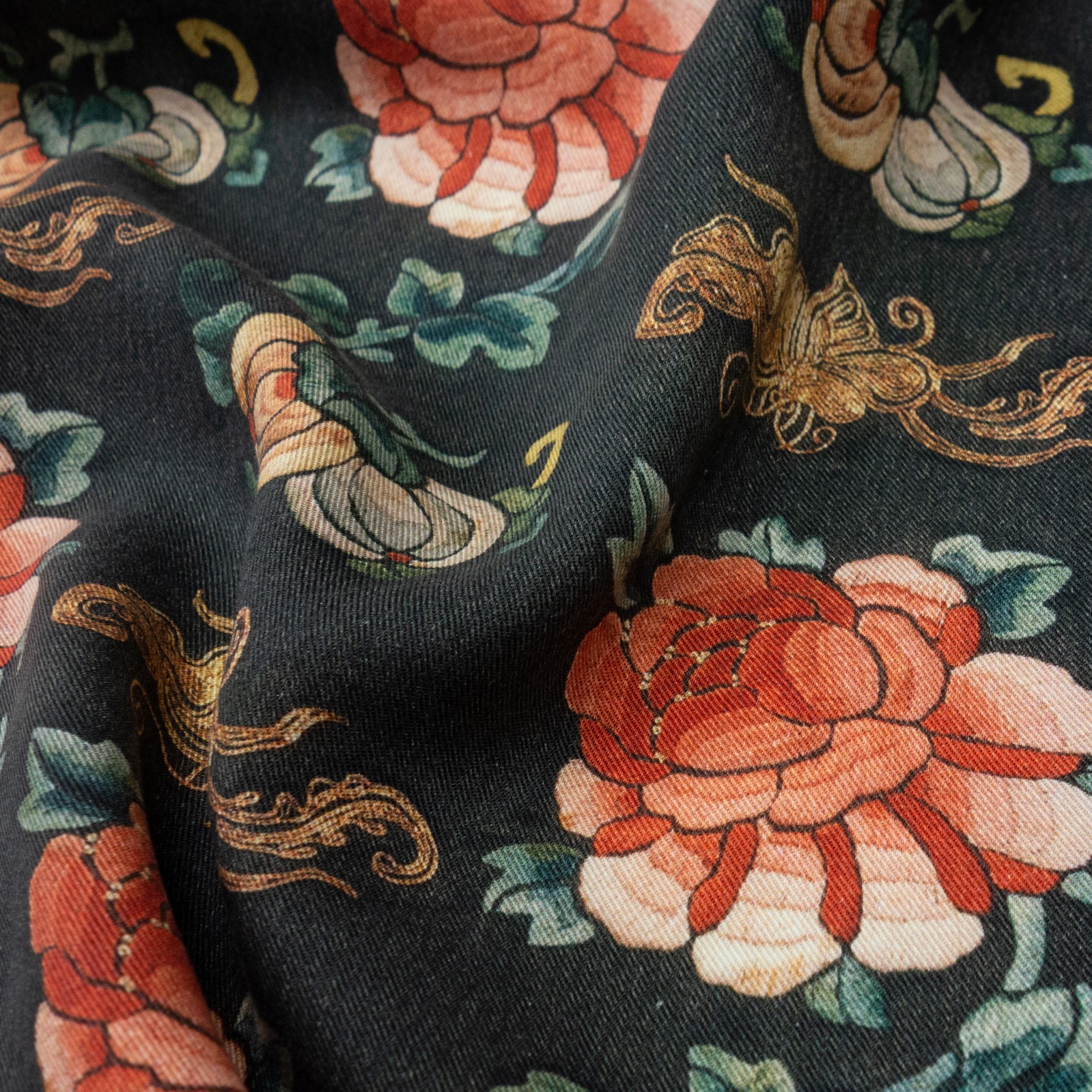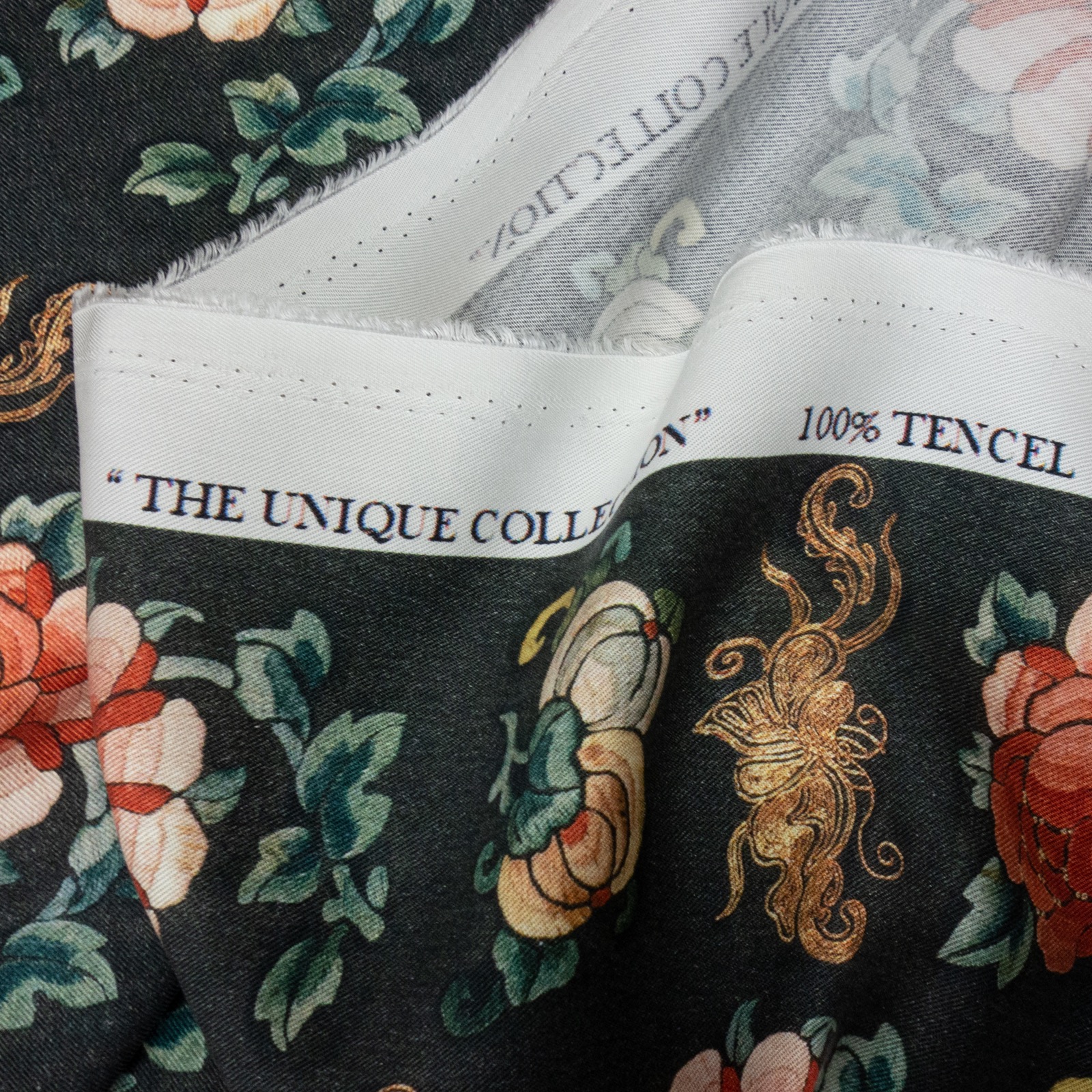 Tencelstoff, Viskosestoff, anthrazit, rottöne, grüntöne, floral gemustert