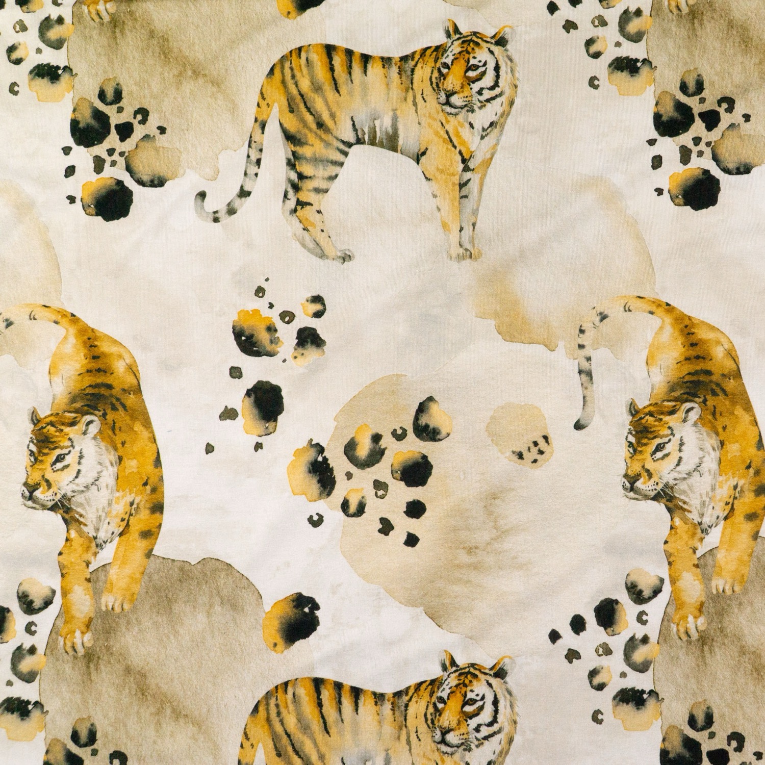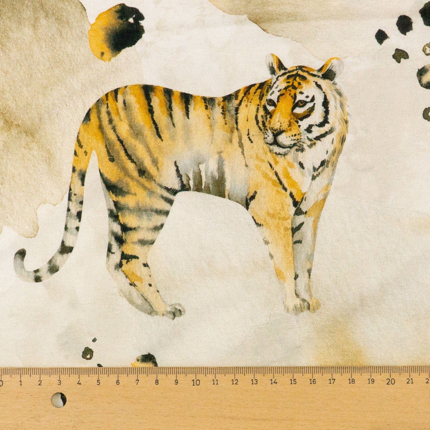 Weicher & elastischer Viskosejersey mit bedruckt mit Tigermotiven. Geeignet z.B. für Tops & Kleider.