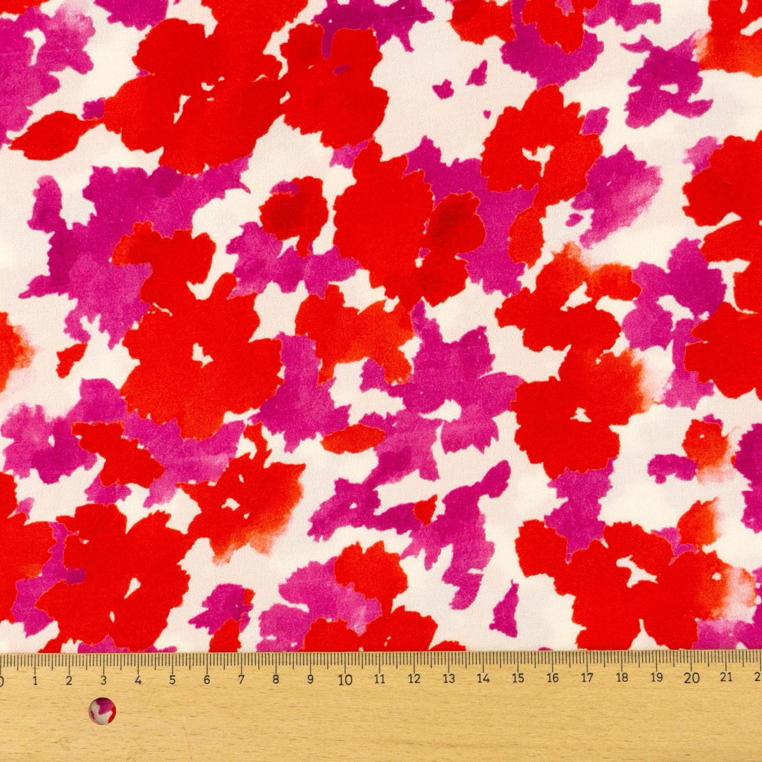Viskosestoff, Crêpe, creme, rot, pink dunkel, abstrakt gemustert