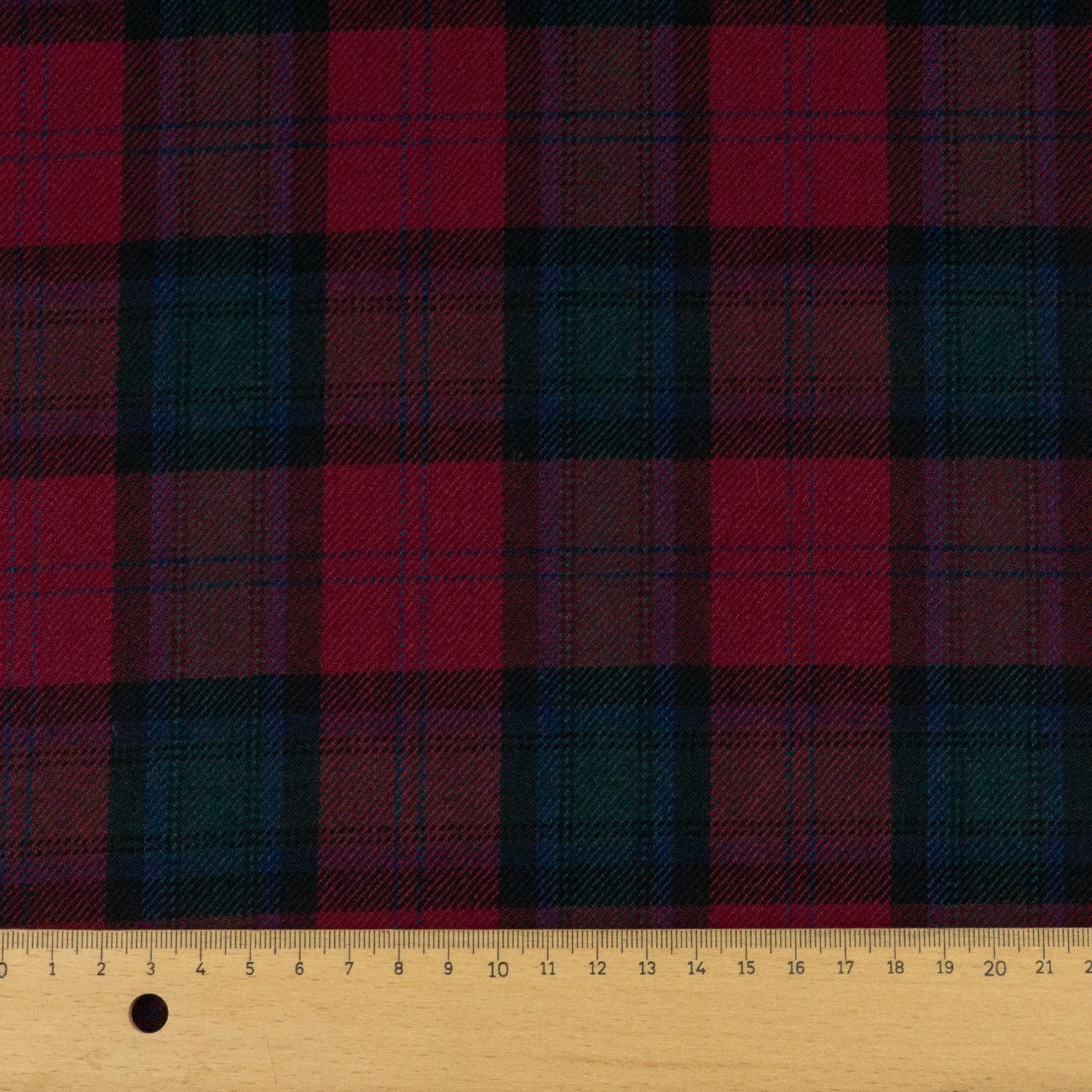 Wollstoff, Buntgewebe, dunkelrot, schwarz, dunkelgrün, dunkelblau, Schottenkaro